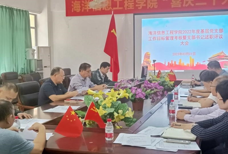 为深入贯彻落实习近平新时代中国特色社会主义思想和党的二十大精神,认真贯彻上级有关工作要求,提升基层党组织政治功能,促进支部战斗堡垒作用的充分发挥。3月1日,yl9193永利官网党总支召开了基层党支部工作目标管理考核暨支部书记述职大会。学院党总支委员、教工支部和学生支部的多数党员及部分师生群众代表参加了会议,会议分别由学院党总支书记郑泽龙和副书记曾令伟主持。
