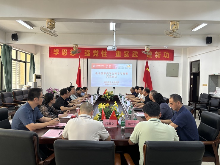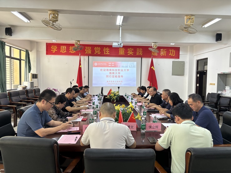 5月21日,海南科技职业大学吴丽华副校长、海南科技职业大学机电工程学院赵峰院长以及海南大学信息与通信工程学院张俊锋教授一行10人来9193官网交流访问,双方围绕电子信息类学生的竞赛组织和教学管理进行了广泛的交流。yl9193永利官网院长王连明主持会议。学院党总支书记郑泽龙、副院长孙志雄、各位系主任、实验中心和双创中心负责人参加了座谈。